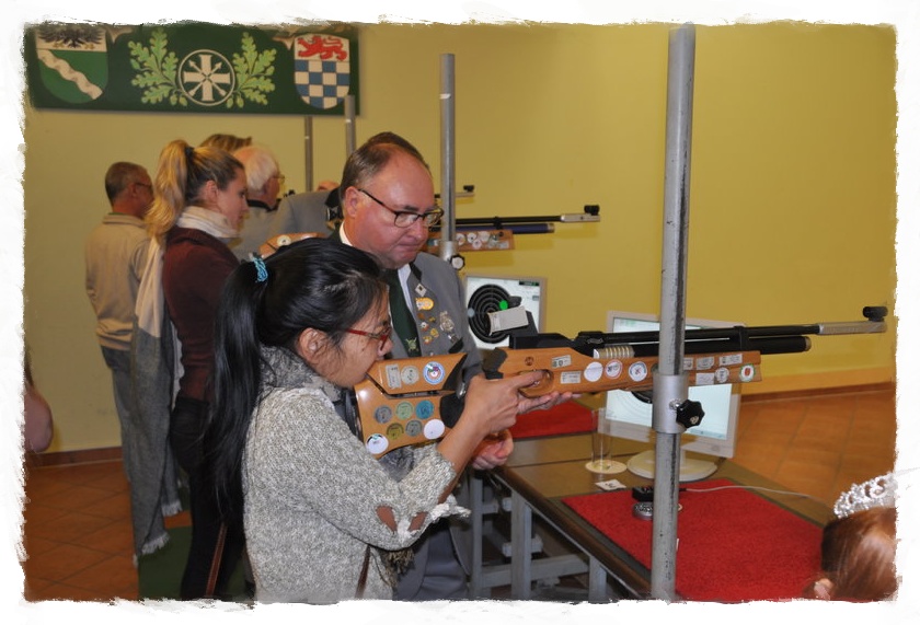 Parallel zum Vogelschießen fand traditionell das allseits beliebte Einzel-Glücksschießen sehr guten Anklang. 40 Gäste kämpften mit 190 Serien á 5 Schuss um den Pokal und das Preisgeld. Das Glücksschießen, bei dem keiner der Schützen wusste, wo genau der definierte Zielpunkt lag, wurde auf der elektronischen Anlage ausgetragen. Um es trotzdem sportlich spannend zu gestalten, wurde das Ziel „sehr nah am Mittelpunkt“ definiert und dies den Gästen auch mitgeteilt. Also war Treffsicherheit gefragt.