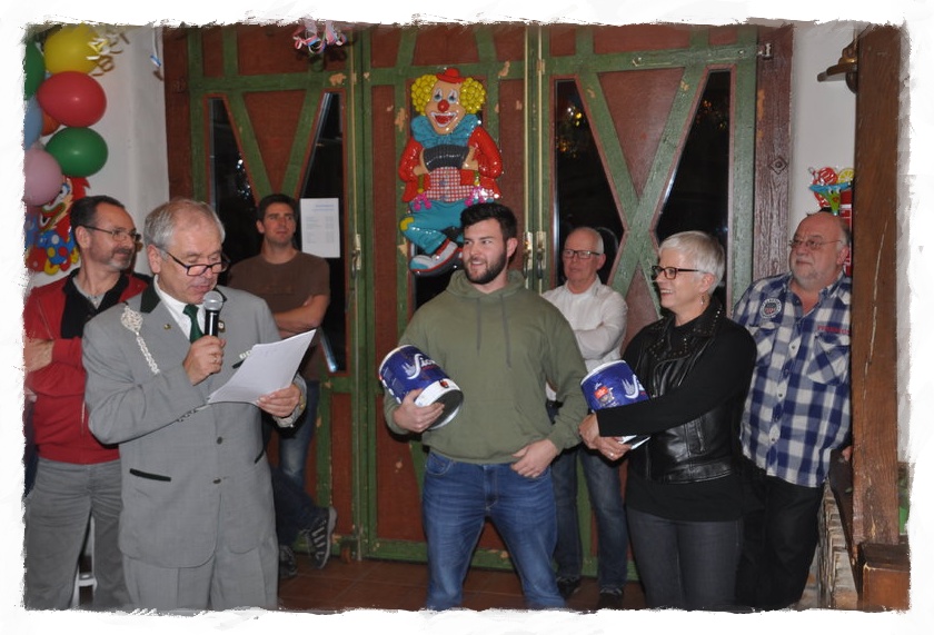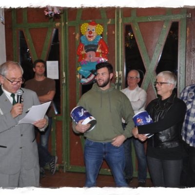 Schießmeister Wolfgang Meyer nahm die Siegerehrung vor und überreichte den strahlenden Gewinnern ihre Pokale und Preisgelder sowie den Pfänderschützen jeweils ein 5 Liter-Fässchen Bier.