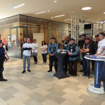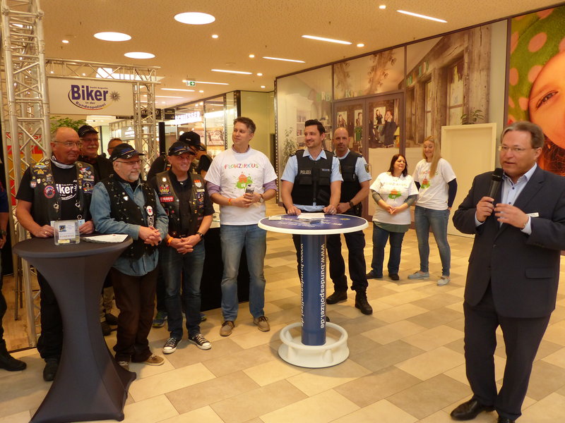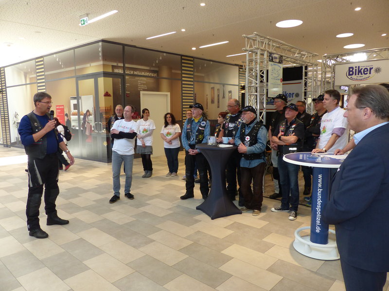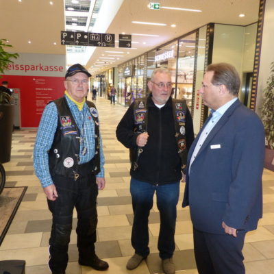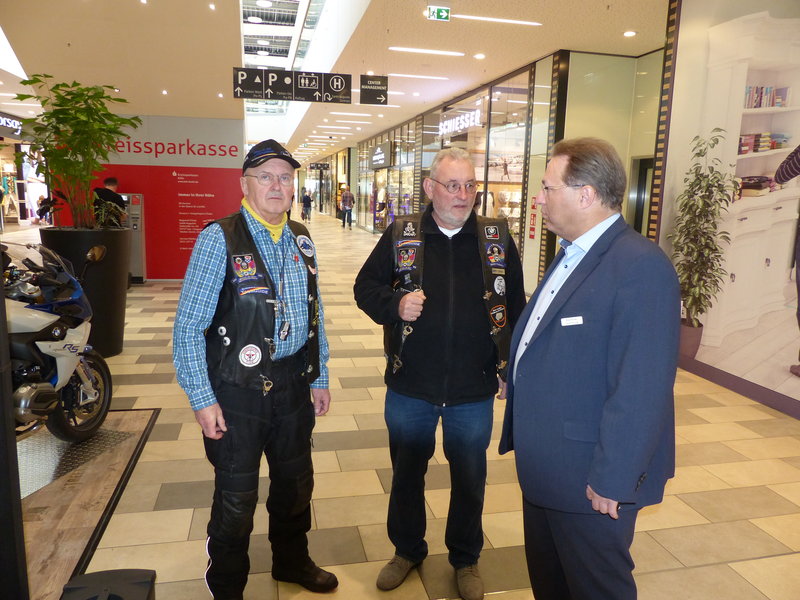 Centermanager Klaus Kricks begrüßte Biker wie Eltern und Erzieherinnen in seinen Räumen. Zum zweiten Mal steilte er den Platz zur Verfügung. Die Motorräder konnten in der Mall aufgestellt werden. Es soll nicht das letzte Mal gewesen sein, sagte er.